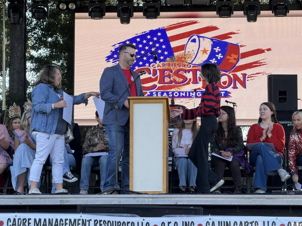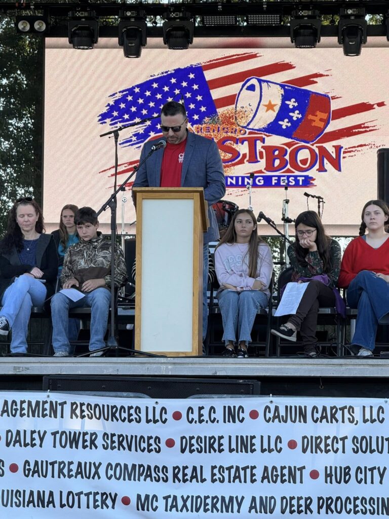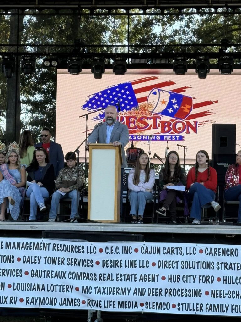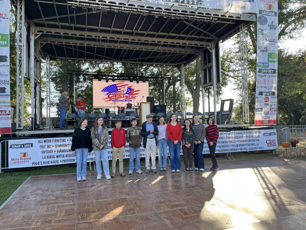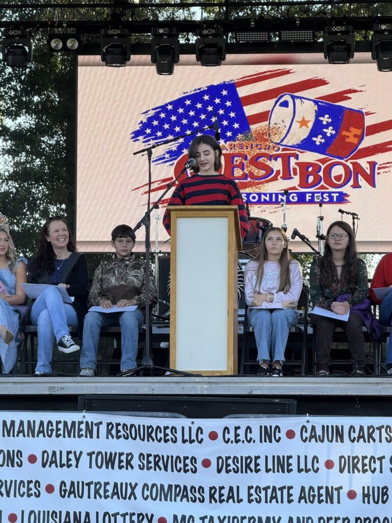 The Veteran’s Day Essay contest is presented to area 8th graders. Out of all the submissions, a top 10 is chosen and the 1st, 2nd, and 3rd place winners receive a monetary prize. All essays tell a story of a veteran that has been interviewed or what Veteran’s Day means to the student. The 2025 Essay Contest winners were announced and presented with monetary prizes and certifcates at the Veteran’s Day Celebration on Saturday, November 1 at the 2nd Annual Carencro C’est Bon Seasoning Fest at Pelican Park. The Carencro Veterans Day Essay prizes were donated by Carencro Business Association Members, Dr. Stephen Castille with the Enterprise Business Center, Community Chronicles, Blake Johnson II, State Farm, and Edward Jones Stephen Daste.